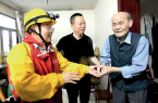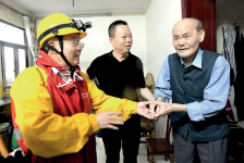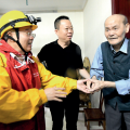 钱海军(左一)上门为受台风影响的金山社区独居老人检查室内线路