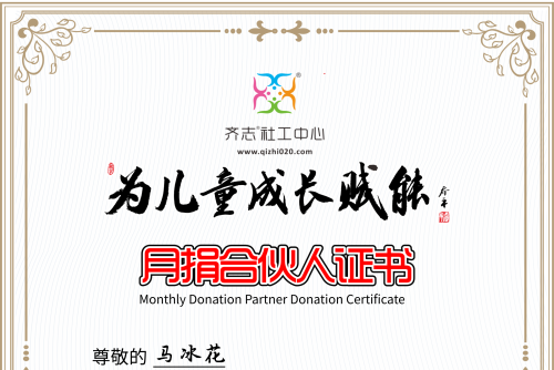 马冰花月捐合伙人捐赠证书2026YJ074 诚邀您成为 “为儿童成长赋能”素养提升